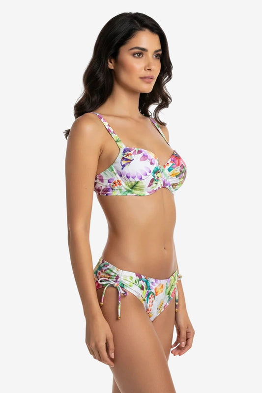 Bikini Push Up Righe Floreali Bianco Rosso Cruise Collection