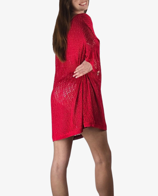 Caftano Maglia Lurex Rosso Cruise Collection