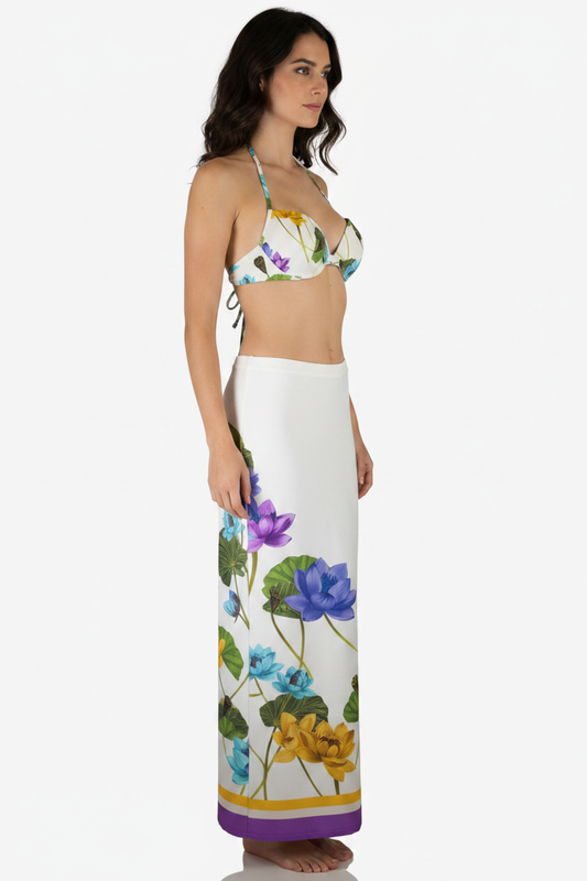 Bikini Ferretto Avorio con Fiori di Loto – Raffaela D’Angelo