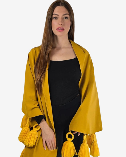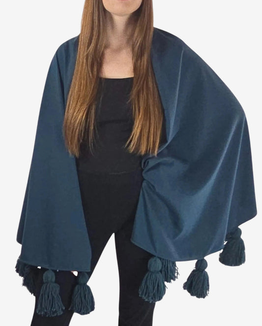 Mantella con nappe in lana Merinos e viscosa punto Milano