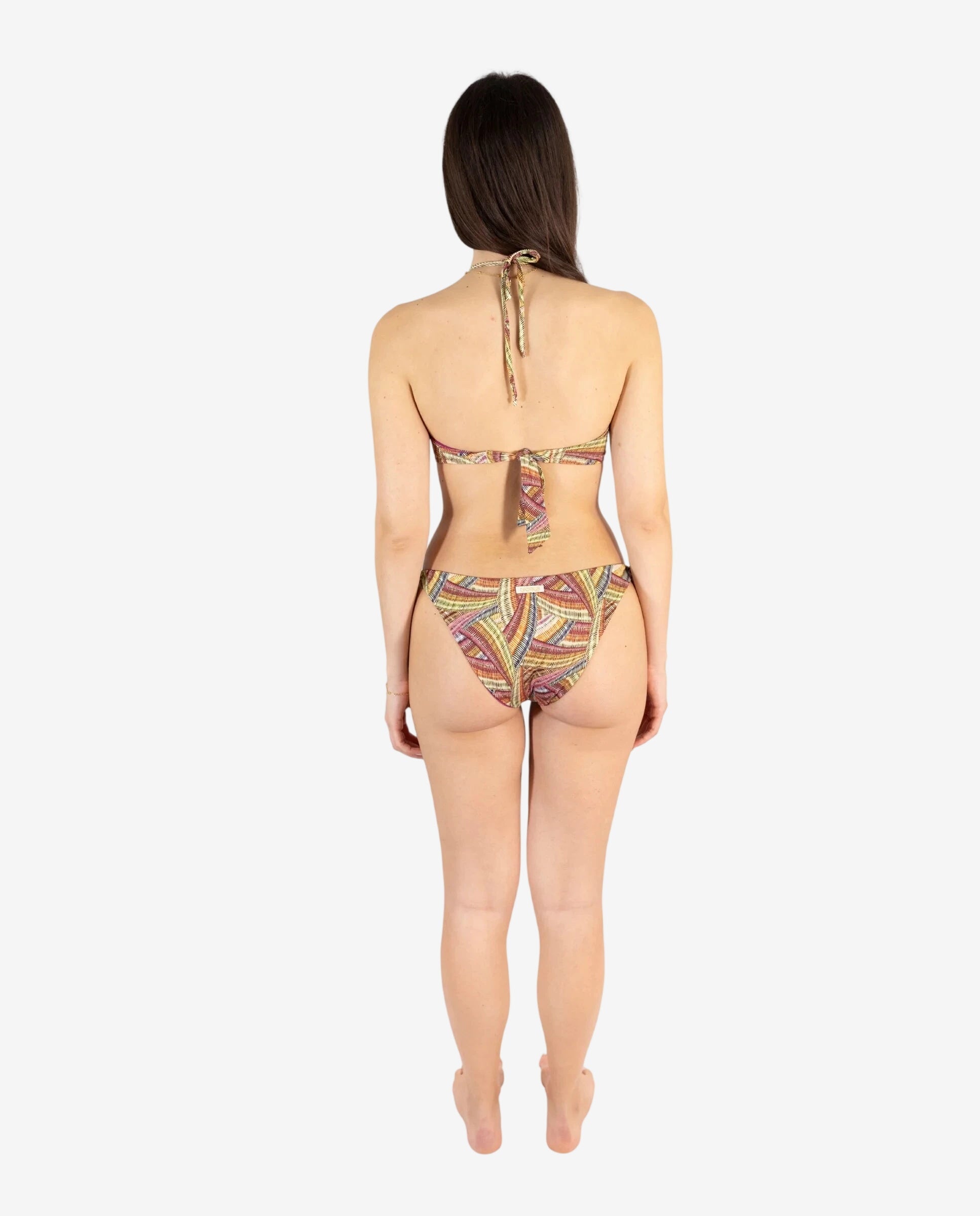 Il Multicolor sul Triangolone è una festa. La coppa generosa diventa la tela perfetta per un pattern vivace e senza regole — tanti colori che si muovono insieme, si mescolano, si esaltano a vicenda. Per chi vuole essere notata senza dover aggiungere nulla.